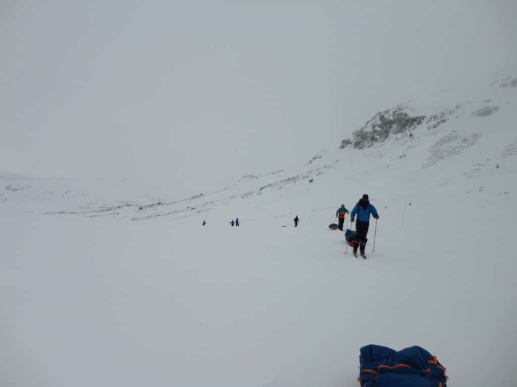 This morning we explore skiing off-track and take on some steeper ground, back to the fjellstue for lunch, before setting off on our first journey taking with us our pulks (sledge) but at this stage they’re not fully laden! Winter campcraft session, and then in the evening we start to prepare the equipment ready for our three nights out on expedition.