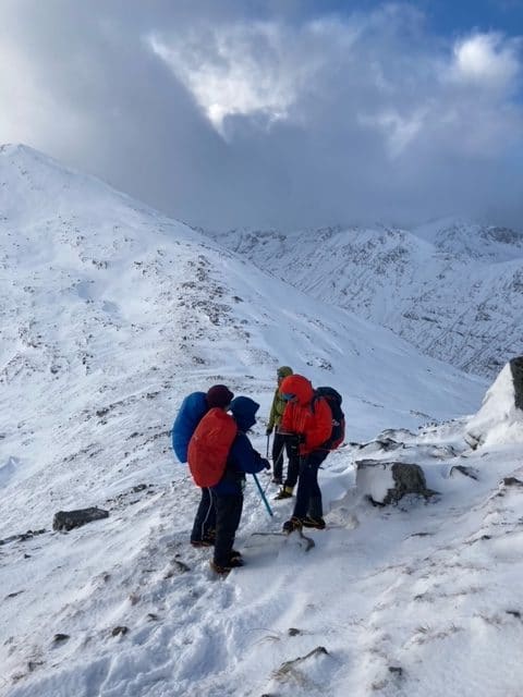 Today you will focus on how to pack your backpack. Layering and winter clothing. We will make sure you understand the important of footwork in winter conditions. Using your ice axe and ice axe arrest. Use of crampons/ techniques Introduction to avalanche awareness/ weather and winter navigation. We will also focus on safety on steep ground and emergency procedures.