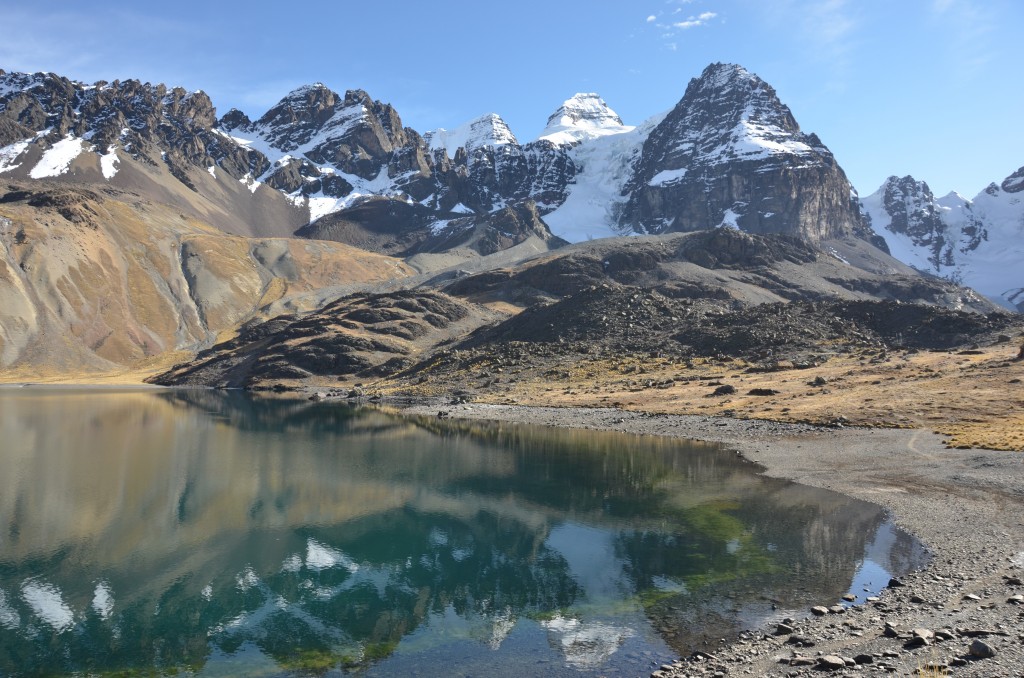 After a good nights sleep in La Paz we are up early and drive to the trailhead (Tuni) at 4,400m/ 14,436ft, at the trail head we load burros with our gear for transport to base camp. We take a path that goes up the trail is easy to see as it goes up, passing over the first lake in the way to the Chiar Khota lagoon, at 4,680m/ 15,354ft. We surround the lagoon by the southern side and we set the base camp at the foothills of Nevado Condoriri at 5,700m/ 15,420ft. Surrounded by a huge amphitheatre of impressive peaks. Today we become further acclimatized to the altitude. We brush up on our glacier skills in the afternoon and spend the rest of the day relaxing and preparing for our first climb. Overnight Camp (B,L,D)