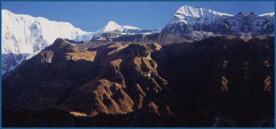 The day starts with a steep descent through the rain forest and through some small areas where people live in these mountains. This takes a few hours as we drop down 700m/ 2,296 feet. One thing to keep in mind during this part of the hike is that there can be leeches throughout this area. we will reach a bridge at 1,900m/ 6,233 feet and continue steeply back up hill to the village of Gurjung as the trail eases. We will have a tea break in Gurjung and continue for 3 hours walking up hill to Chhomrung, which is at the elevation of 2,140m/ 7,020 feet, where we stay overnight at a lodge. The hike today is approximately 5 hours and also, the full distance for the day is 11km/ 6.9 miles. You will hike up 240m/ 787 feet and down 740m/ 2,428 feet.