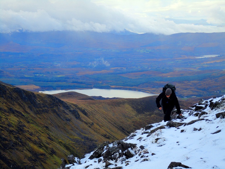 Carrauntoohill is Ireland’s highest peak, positioned in the middle of the ring of Kerry in south west Ireland. This playground of mountains has a challenge for all mountaineers. Standing at 1,039m/ 3,409 ft tall, it is the central peak of the beautiful Macgillycuddy Reeks Mountain Range. Carrauntoohill is a serious mountain and not to be under estimated.