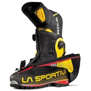1). My favorite mountaineering boots at the moment are the La Sportiva G2SM mountaineering boots. Super light and really warm. A similar boots is the La Sportiva G5 Evo. I always prefer the double boot system and these boots can be used on 90% of the mountaineering trips I am currently undertaking. I use these boots on Island Peak, Mera Peak, Aconcagua, Mount Elbrus They are versatile for climbing in a wide range of conditions and terrain.